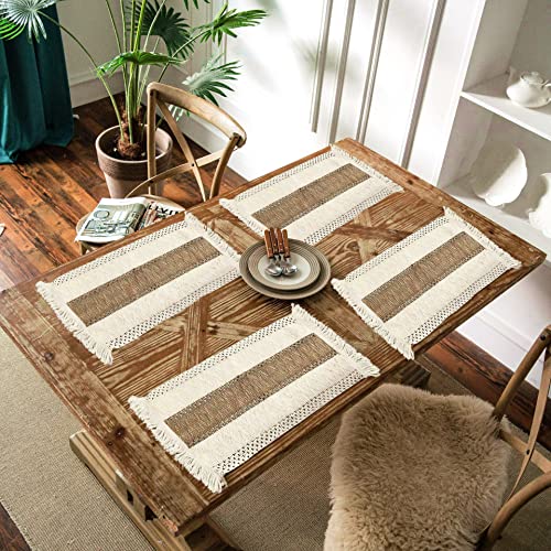 Cchyt Lot de 4 Sets de Table Rectangulaires Macramé Jute Pom...