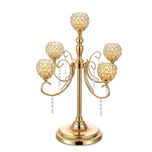 NUPTIO Candélabre 5 Bras Or 75cm Bougie Cristal en Métal Pil...