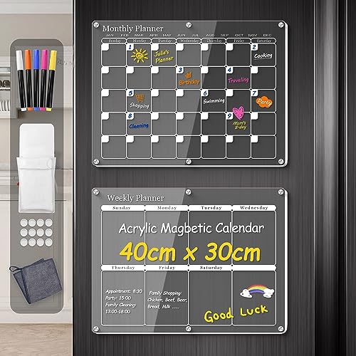 Lot de 2 Calendrier Magnetique Frigo Transparent, Planificat...