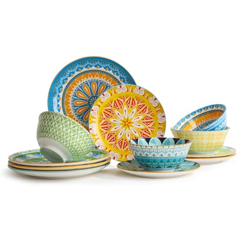Service Table Complet Ceramique 12 Pièces Couleurs pour 4 Pe...