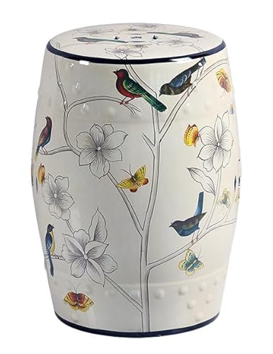 Tabouret Asiatique Blanc Céramique Oiseaux
