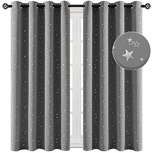 NAPAREIL Rideaux occultants étoiles argentées enfant gris