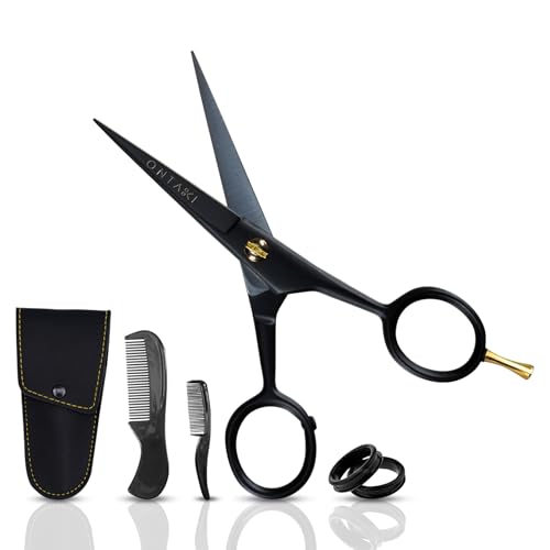 ONTAKI Ciseaux barbe moustache 5\" repose-doigt noir
