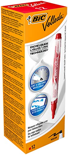 Bic Velleda Tableau Blanc Effaçable Conique Rouge 12