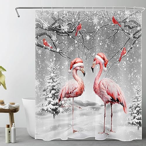 LB Noël Gris Rideaux de Douche 150x180cm(LxH) Oiseau Rouge F...