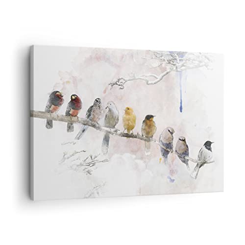 Moderne Impression sur Toile Oiseaux Canaries Branche Image...
