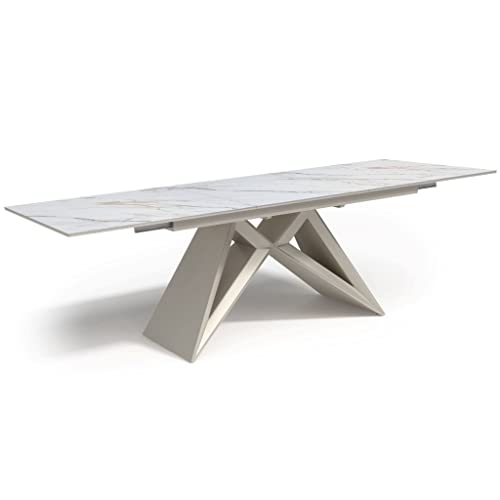 LARA Table à Manger Extensible Céramique Beige