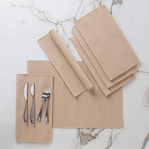 Encasa Sets de Table Coton Côtelé Beige Solide 48x33 cm