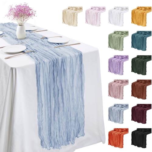 Chemin de Table Bleu Ciel Mousseline Soie
