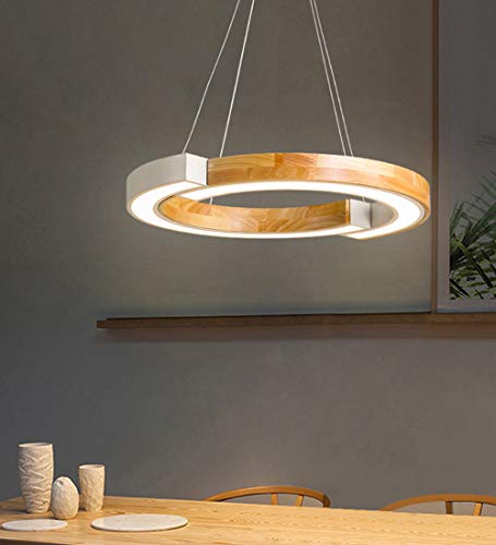 Suspension luminaire bois LED table à manger, lustre ronde d...