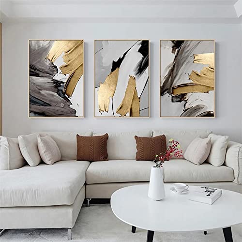 Tableau abstrait à 3 panneaux sur toile dorée et grise sur t...