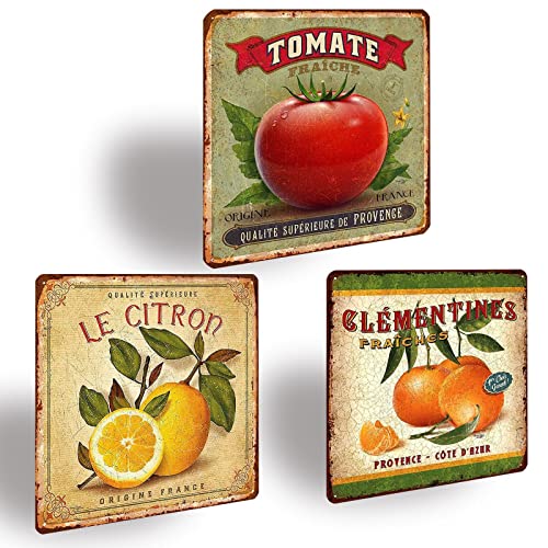 Vintage Cuisine Plaque Métal Citron Tomate Clementines Table...
