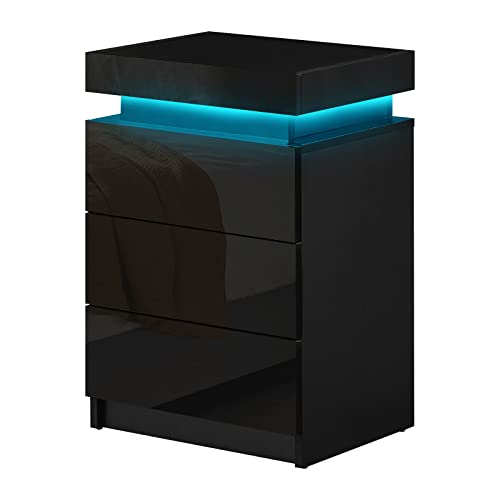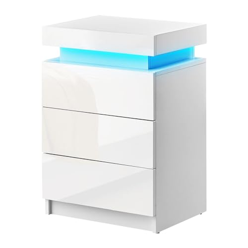 CLIPOP Table de Chevet Moderne 3 tiroirs LED