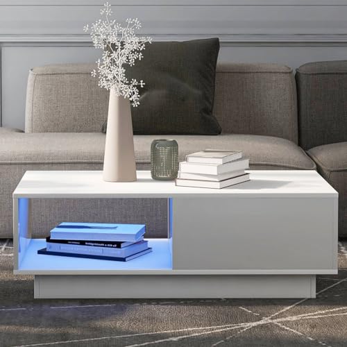 Sweiko Table basse LED, tiroir et étagère ouverte