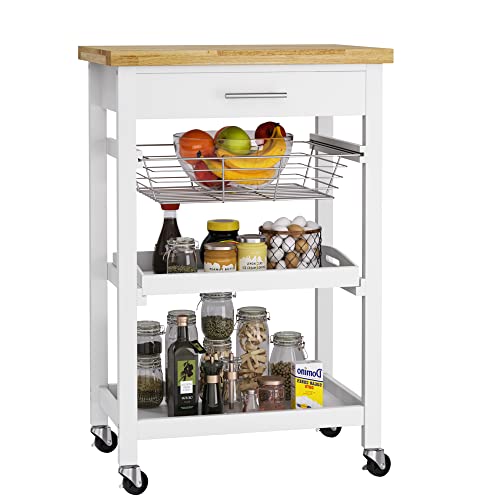 Desserte de Cuisine Roulettes Bois Chariot Blanc