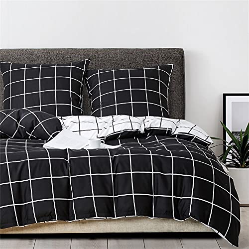 Gezu Carreaux Noir Blanc Housse de Lit 220x240cm