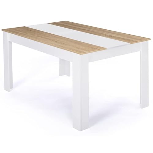 La table à manger extensible EDEN 160-200 cm bois et blanc e...