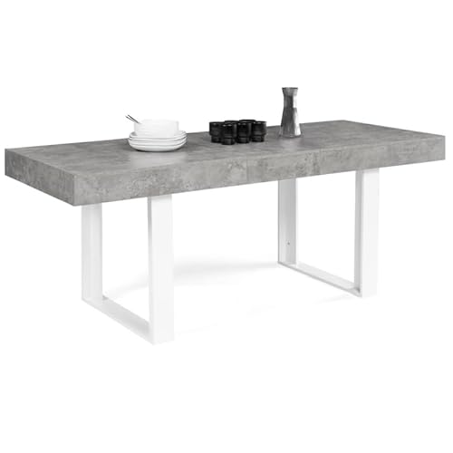 IDMarket Rectangle Table Extensible Concrete White 160-200 c...