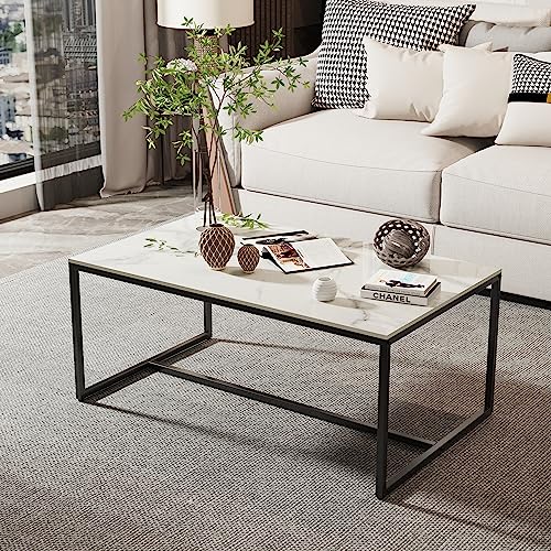 Fatiov Table Basse Marbre Salon Noir Industriel