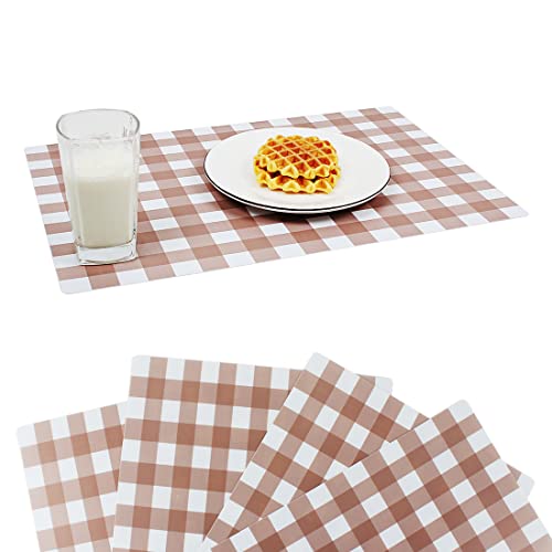 Sets de table à carreaux en plastique PP marron et blanc, 4