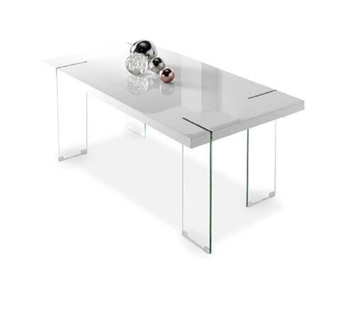 Table à manger bois laqué blanc brillant, 180 x 90 x 75.5 cm