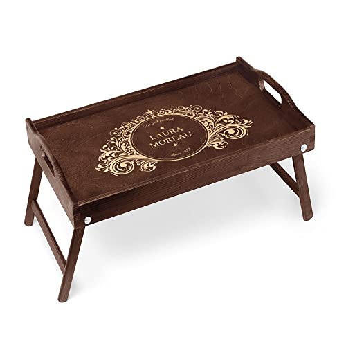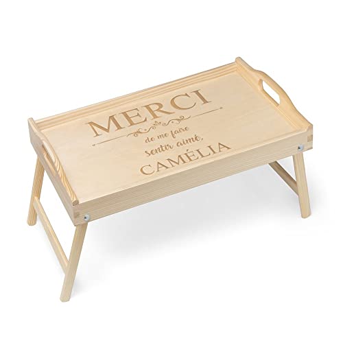 Maverton Table Pliante Gravée - Plateau de Lit en Bois de Pi...