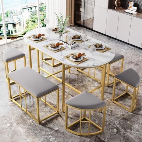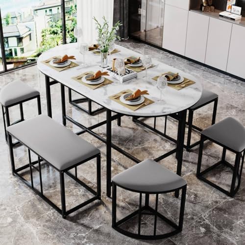 Sweiko Table et Chaises Moderne Cuisine Ensemble Métal Empil...