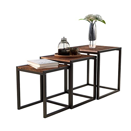 Lot de 3 tables basses industrielles en métal, cadre angle m...