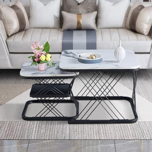 Dong Lot de 2 tables basses rondes et carrées empilables mét...