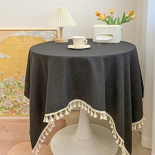 Linge de table nappe à pompon moderne lin rectangle noir gri...