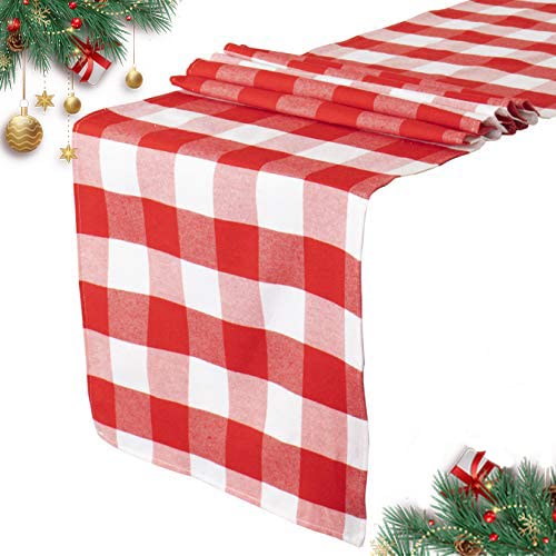 Chemin de Table Rouge et Blanc Carreaux de Buffle 35,6 x 182...