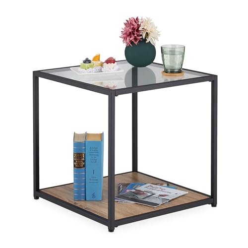 Relaxdays Table basse carrée métallique verre noire 50x50x50...