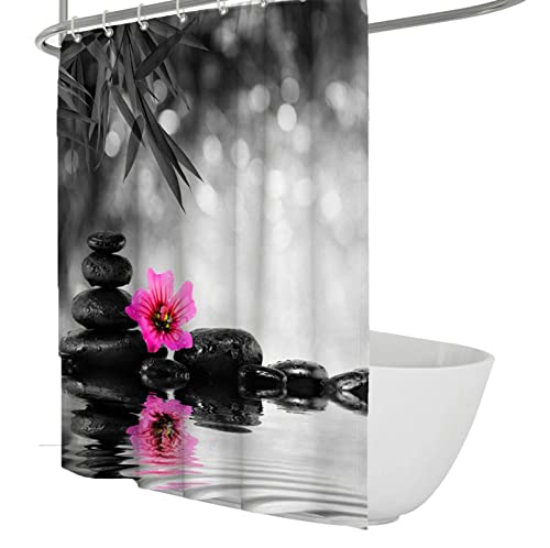 Noir Blanc Rideau De Douche Zen Pierre Rose Orchidée Yoga Ri...