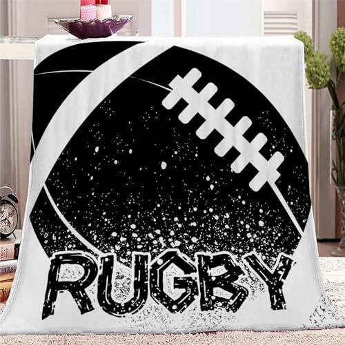 YBRAVO Couverture Enfant 100x150 cm Rugby Noir et Blanc Plai...