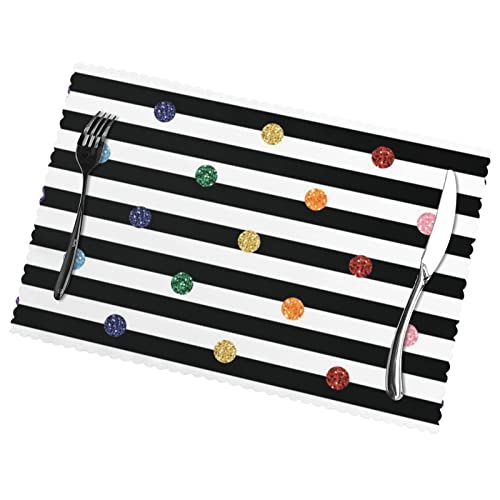 Ce set de table a un imprimé tendance à pois arc-en-ciel noi...
