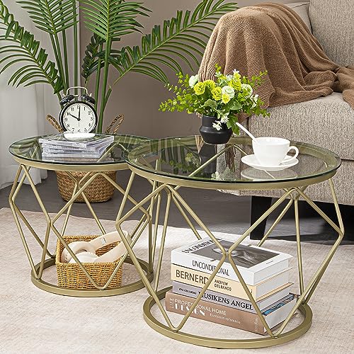 Hzuaneri Set de Tables d'appoint Ronde Basse, 2 Tables + Cad...