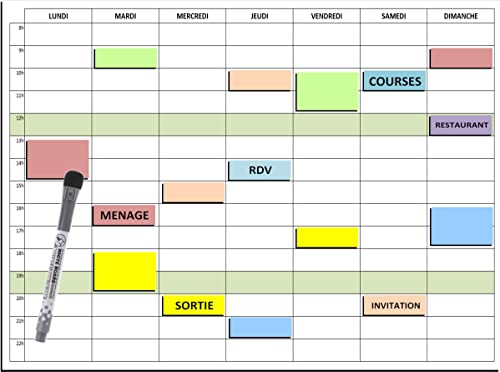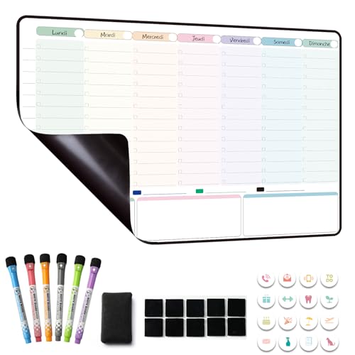 Planification semaine magnétique effaçable 30x40 cm A3 16 ma...