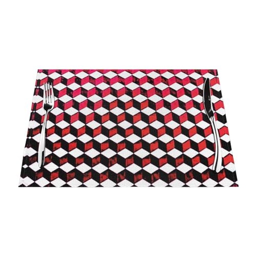 Tissé élégant à carreaux rouges 3D - Durable, lavable, tapis...