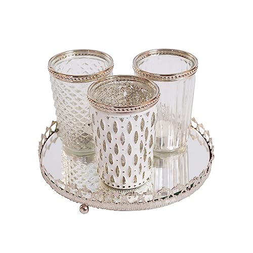 Jinfa Ensemble de 3 bougeoirs en Verre plus 1 Plateau Miroir...