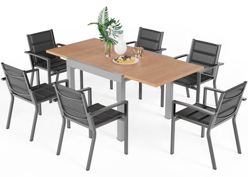 Salon de jardin polyrotin 6 places avec table WPC 150x90cm e...