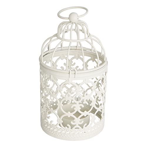 Photophore en Métal Blanc Suspendu Lanterne Cage à Oiseaux C...