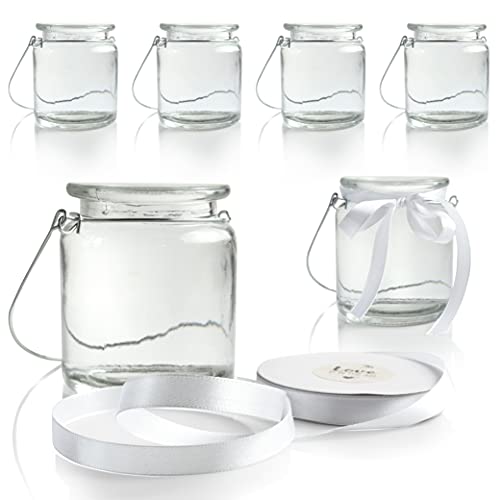 WeddingTree 6 x Photophore Verre avec Anse et Ruban Décorati...