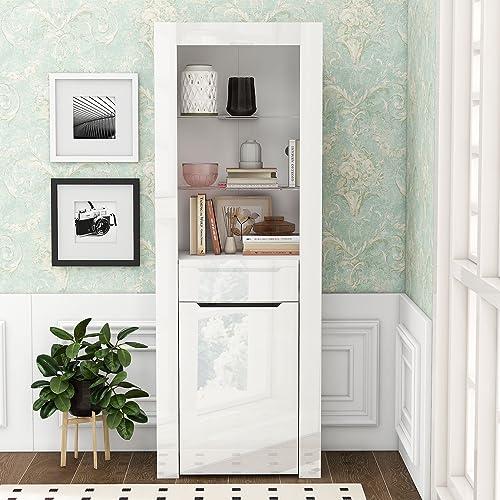 Merax Vitrine avec lumières LED - 1 porte et 1 tiroir - Vitr...