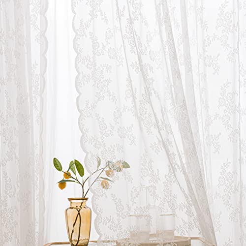 Sutuo Home Lot de 2 rideaux en dentelle blancs transparents...