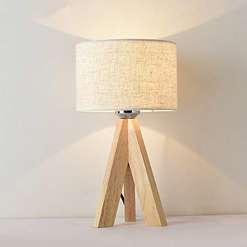 Mengjay Trépied Lampe à Chevet Bois Abat-Jour