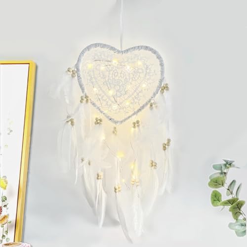 JZK Attrape-rêves en dentelle en forme de cœur avec lumières...