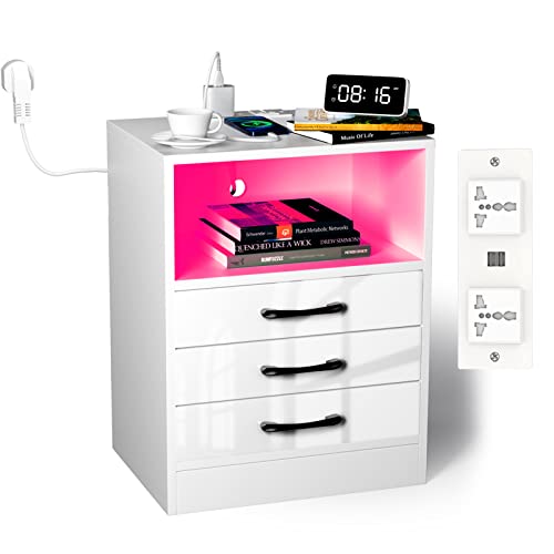 Tableau de Chevet LED, Table d'Appoint Blanche, Tables de Ch...