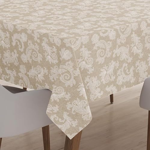 Tableau à manger floral beige 145x300 cm I Floral Jacquard C...