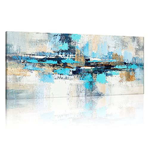 Tableau Decoration Abstraite panoramique Turquoise 100x35 cm