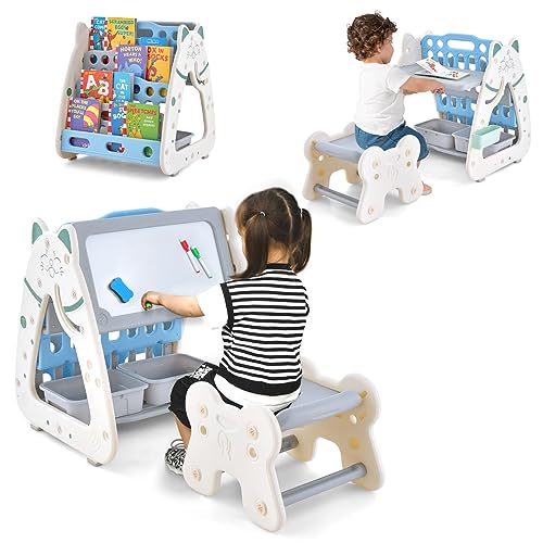 GOPLUS Tableau Enfants avec Chaise et Bibliothèque Magnétiqu...